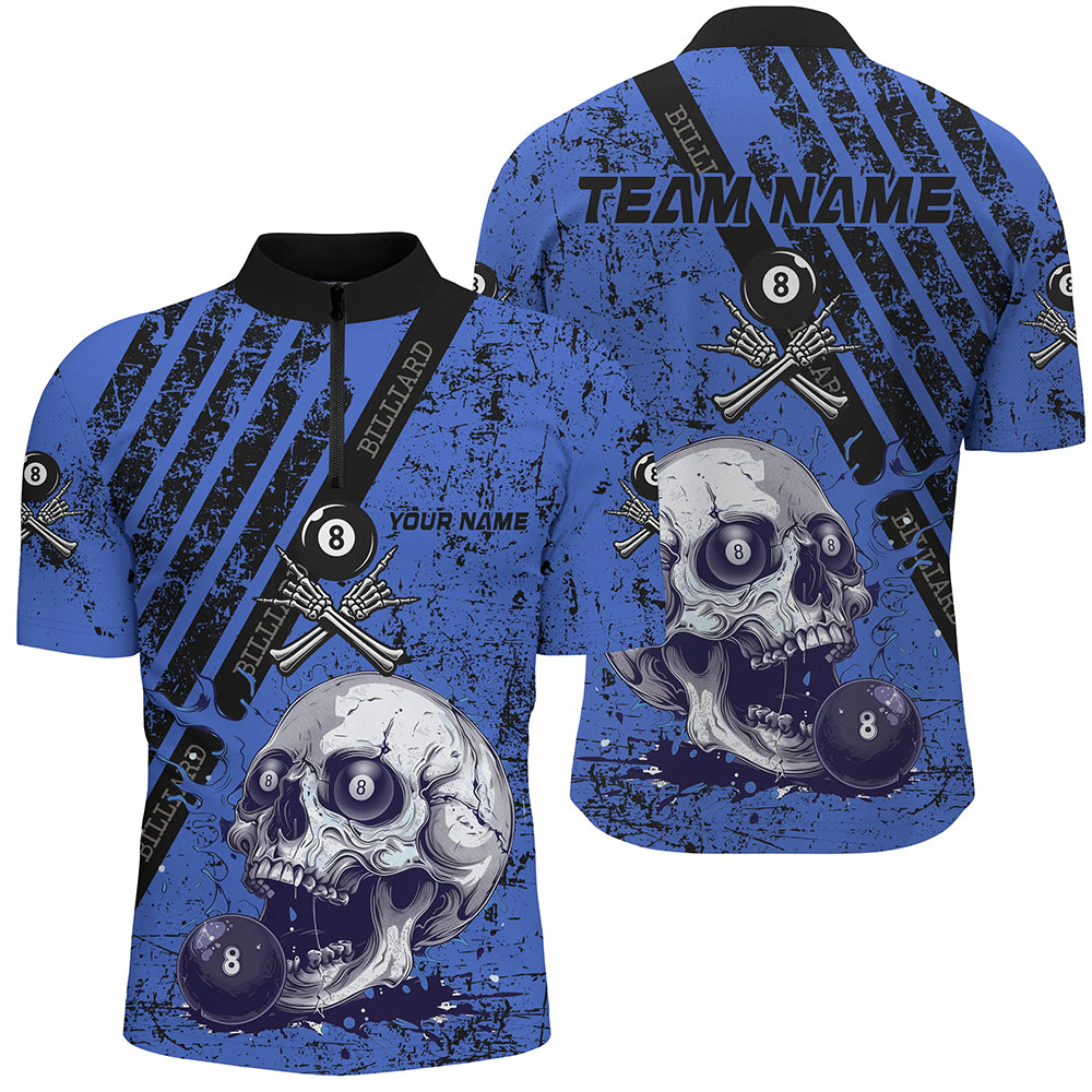 Personalized Grunge Blue Billiard Skull Custom Men Billiard Shirts, Billiard Pool Team Club Uniform TDM1930