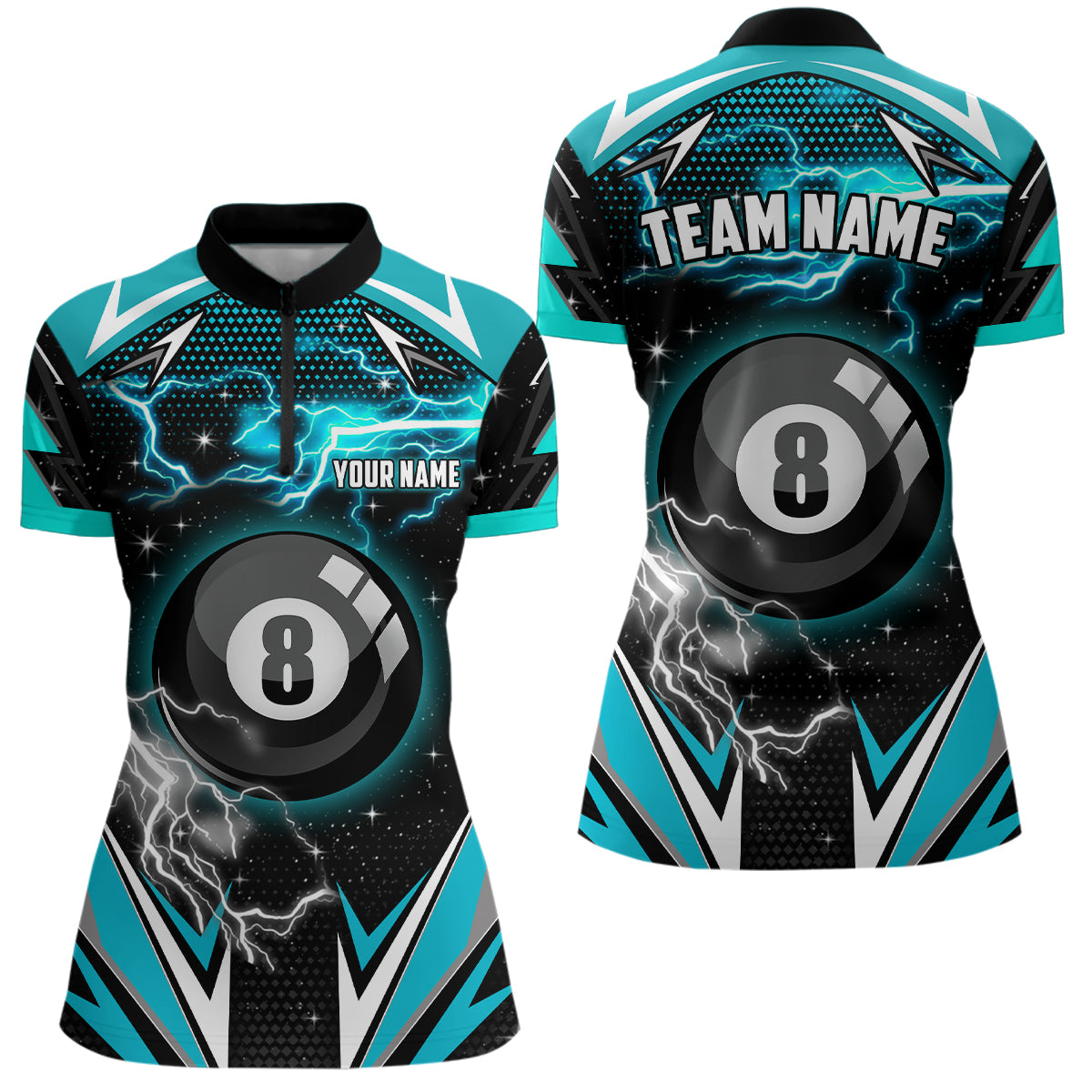 8 Ball Pool Billiard Jerseys For Women Custom Turquoise Billiard Shirts Team League Pool Jerseys TDM1933
