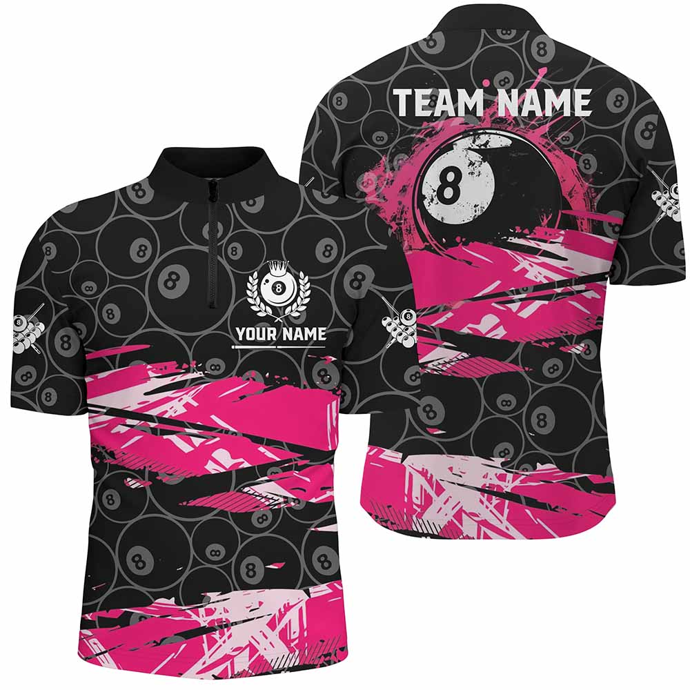 Custom Pink Grunge Billiard 8 Ball Jerseys Shirts For Men, Personalized Billiard Pool Player Gifts TDM1939