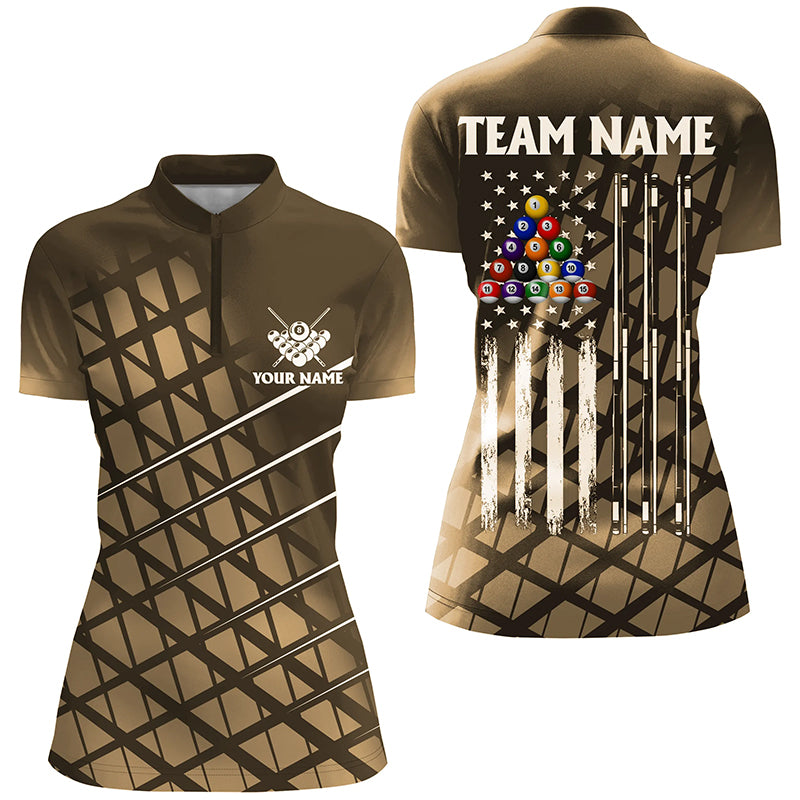 Personalized Gold Grunge American Flag Women Billiard Shirt Custom Patriotic Pool Player Jersey Shirt TDM1947