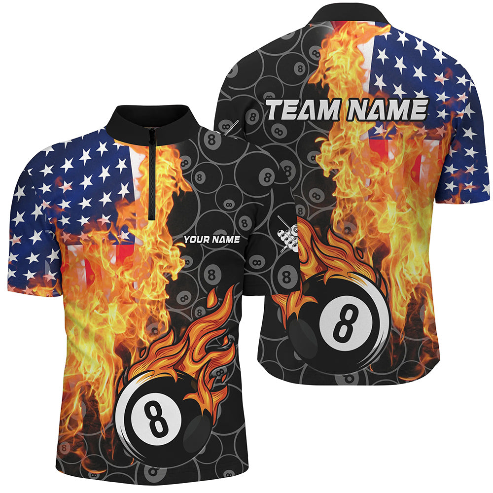 American Flag Fire Flame 8 Ball Billiard Shirts For Men Customized Patriotic Billiard Pool Jerseys TDM2023
