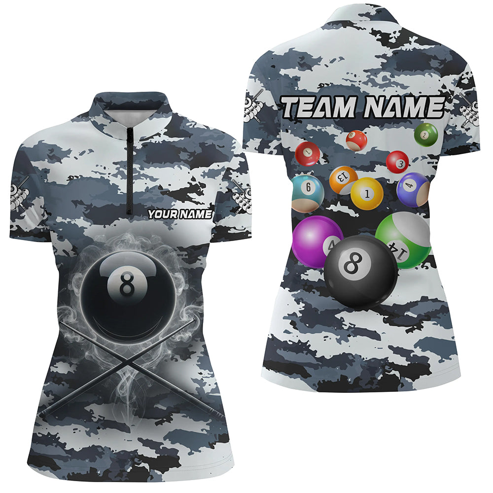 Personalized 8 Ball Pool Smoke Billiard Shirts For Women Custom Camo Billiard Balls Team Jerseys TDM2084