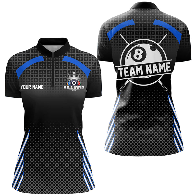 Personalized Billiard Tournament Pool Shirts For Women, Best Custom 8 Ball Billiard Team Jersey |Blue TDM2132