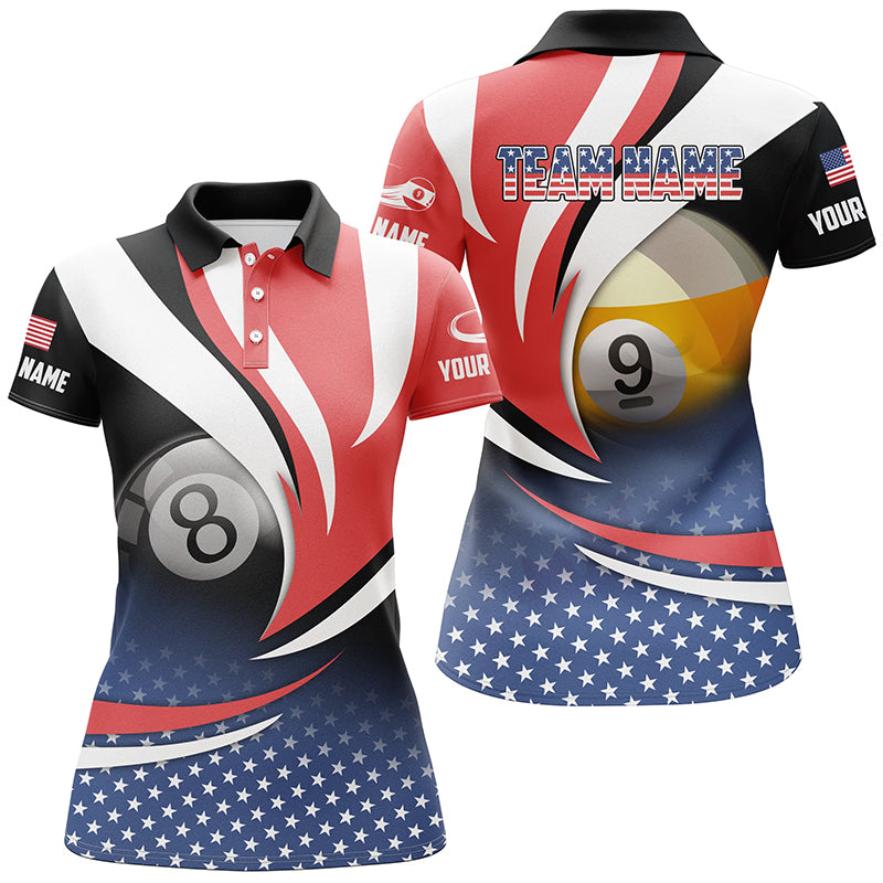 8 Ball & 9 Ball Pool Custom American Flag Billiard Shirts For Women, Patriotic Billiard Pool Jerseys TDM2136