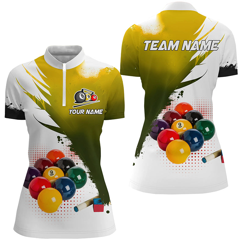 3D 9 Ball Pool Billiard Jerseys Women Polo & Quarter-Zip Shirts Custom Billiard Team Shirts |Yellow TDM2155