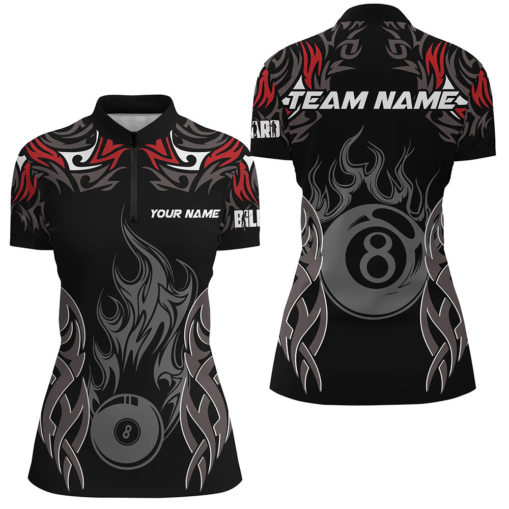 Personalized Billiard Tournament Jersey For Women Custom 8 Ball Fire Flame Billiard Team Shirts |Red TDM2335