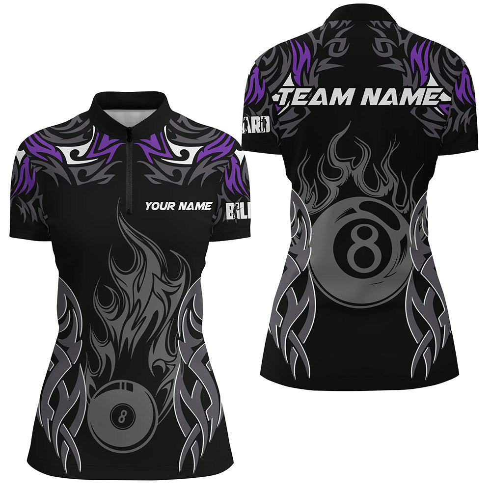 Customized Billiard Tournament Jersey For Women, 8 Ball Fire Flame Billiard Team Shirts | Purple TDM2337