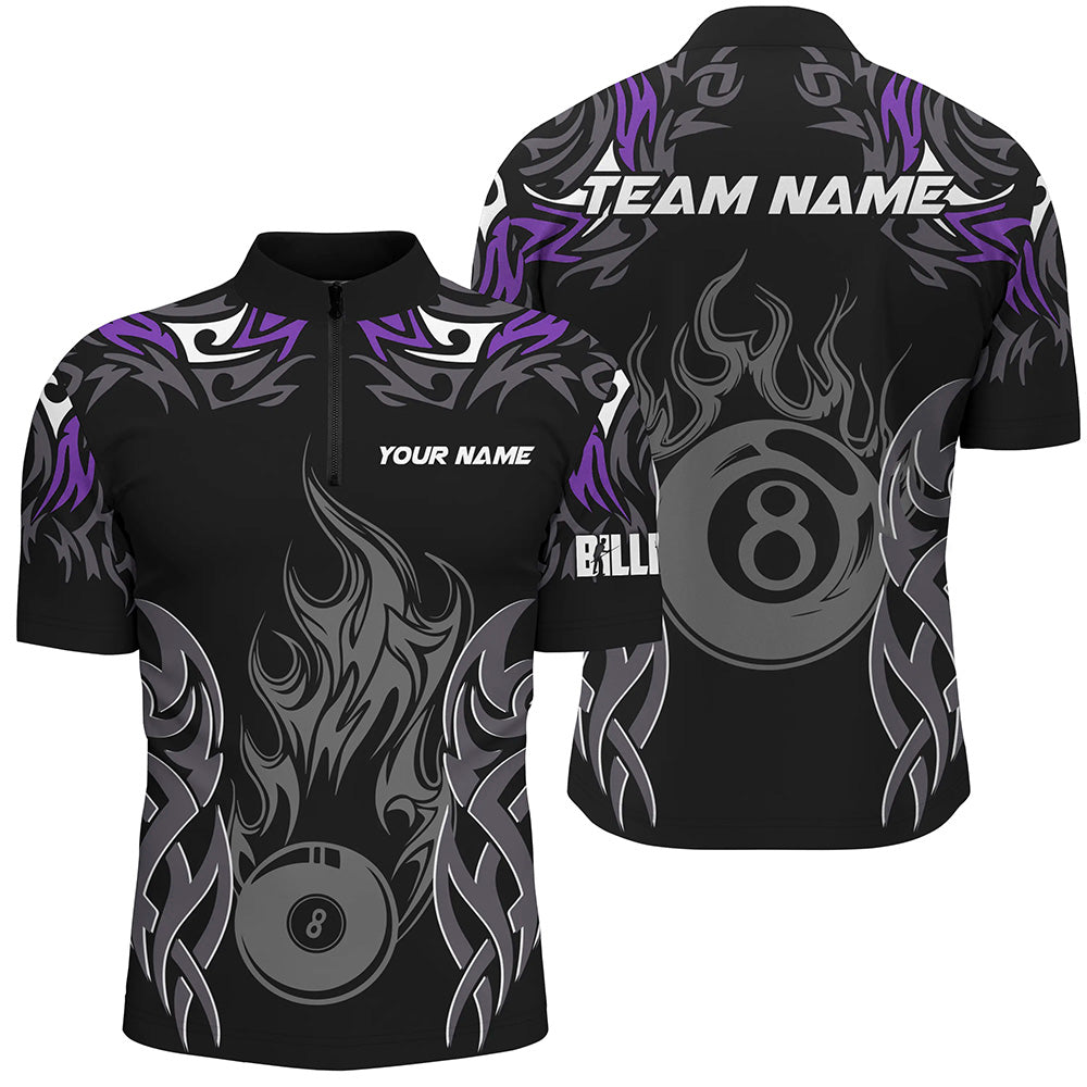 Customized Billiard Tournament Jersey For Men, 8 Ball Fire Flame Billiard Team Shirts | Purple TDM2337