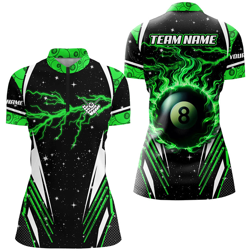 Galaxy Lightning Green 8 Ball Pool Fire Custom Billiard Shirts For Women, Billiard Team Jerseys TDM2341
