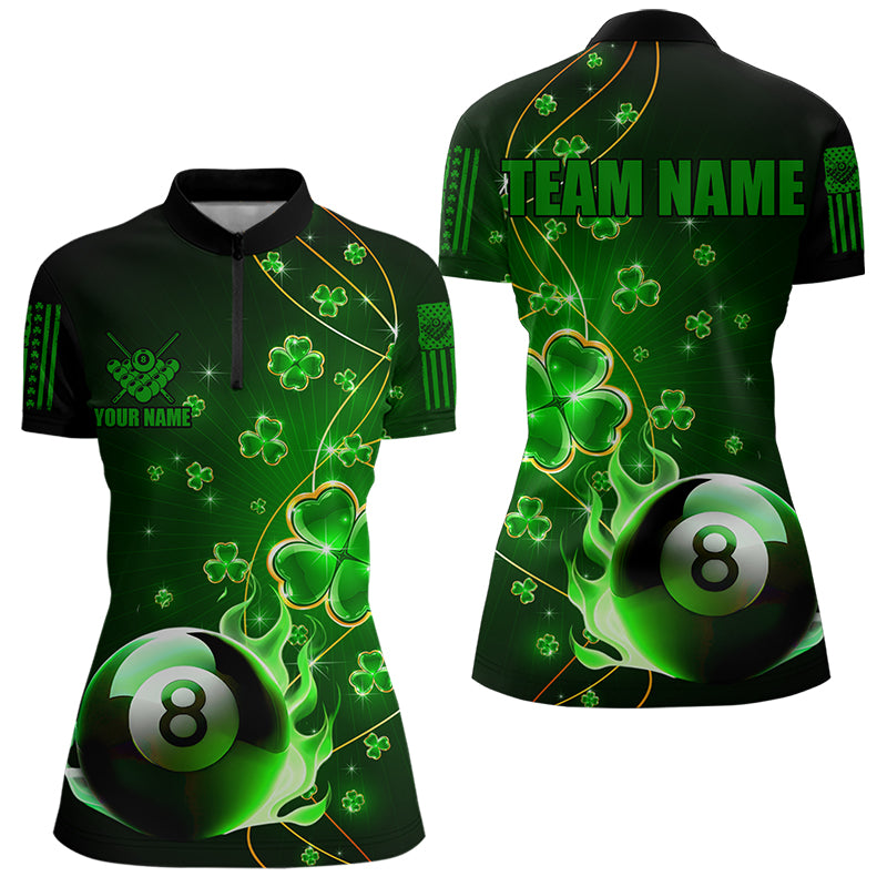 Green 8 Ball Pool Fire Luckiest Shamrock Women Billiard Shirt Custom St Patrick Day Billiard Jerseys TDM3389
