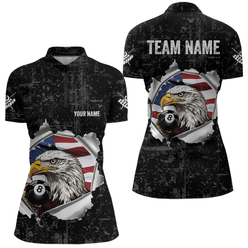 Personalized 8 Ball Pool Eagle US Flag Billiard Shirts For Women Custom Black Grunge Billiard Jerseys TDM3762