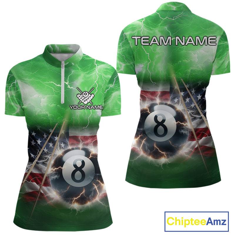 Green American Flag Thunder Lightning 8 Ball Billiard Shirt For Women Custom Pool Team Jersey TDM5265