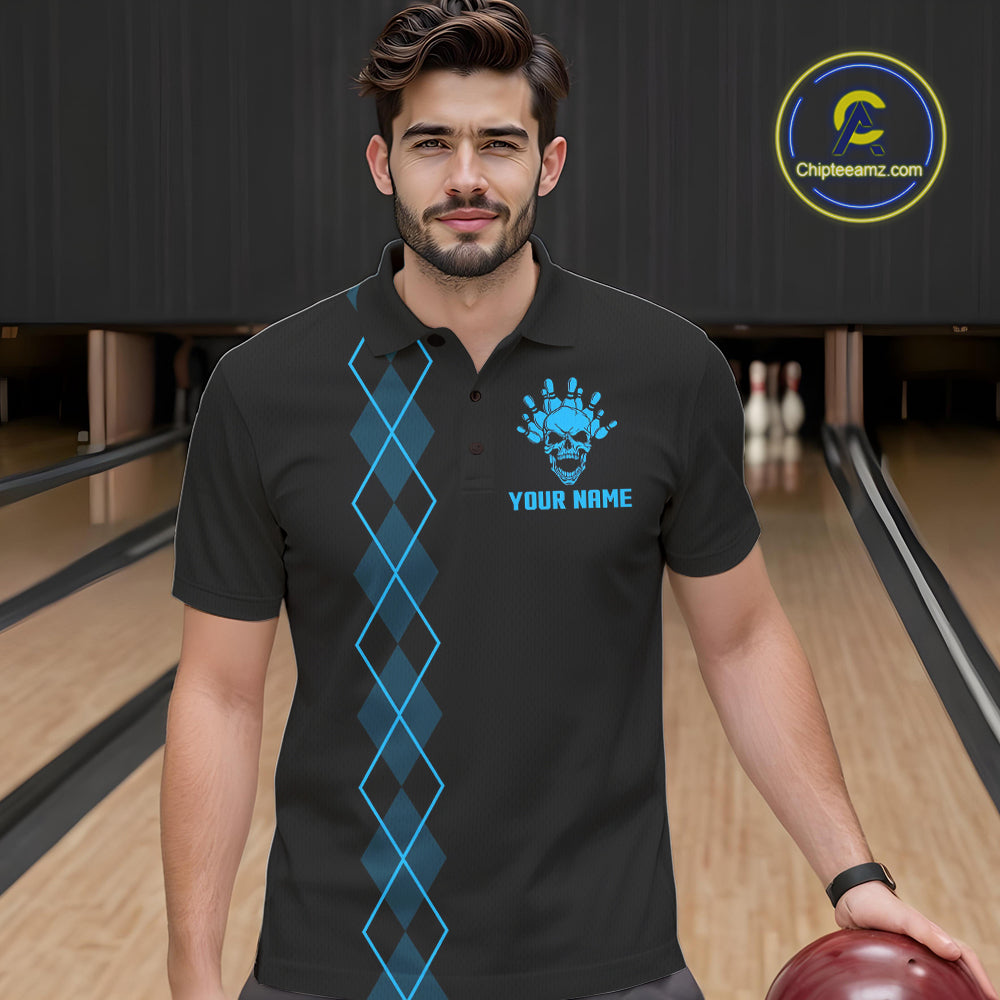 Custom Black and Blue argyle American Flag Skull retro Mens Bowling Shirts patriotic Team Jerseys NQS11132