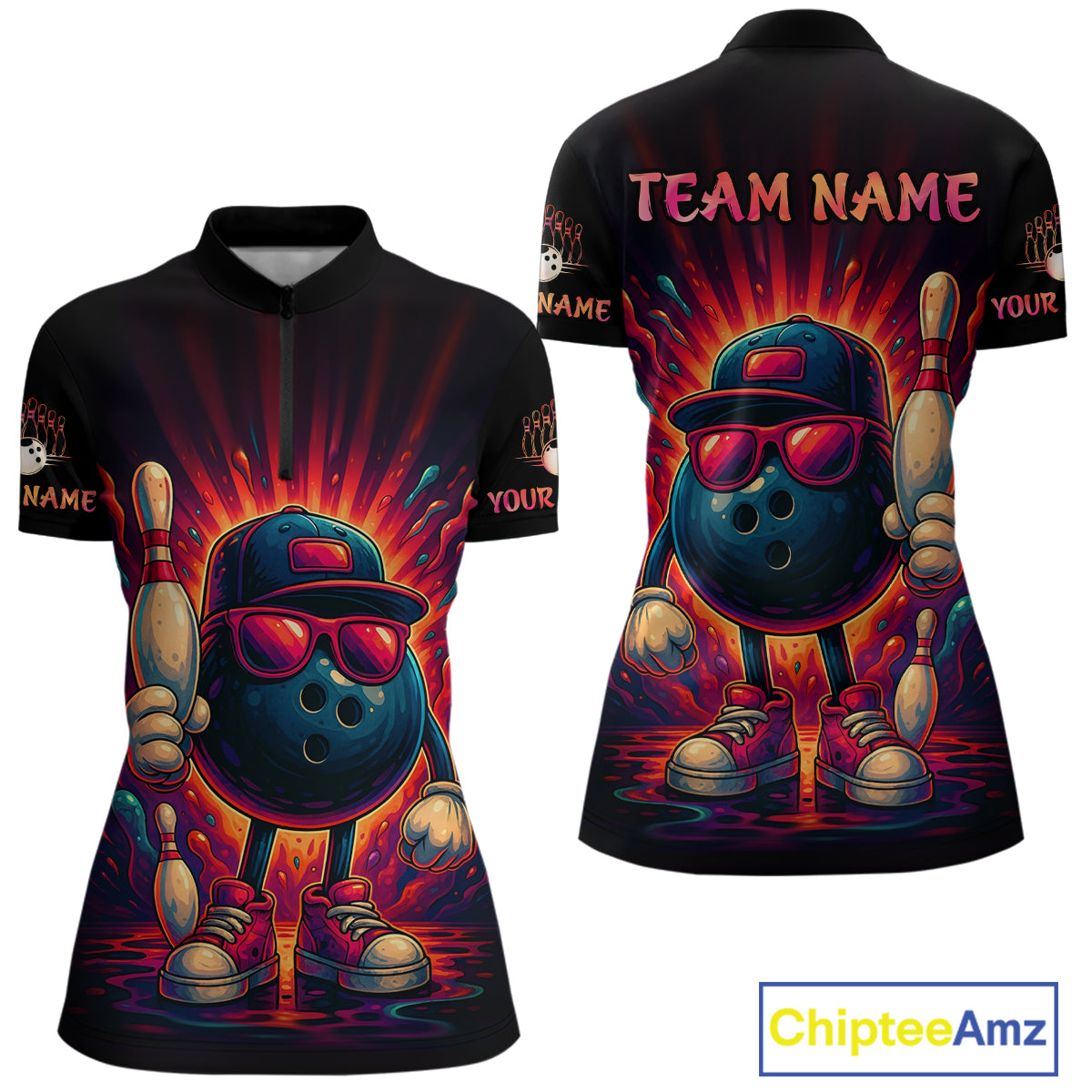 Personalized Funny Bowling Polo, Quarter Zip Shirts For Women Custom Team Bowling League Jerseys NQS11111