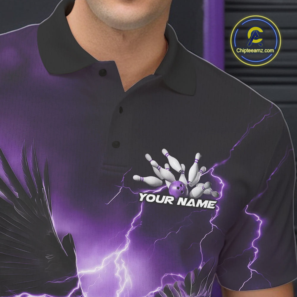 Custom Purple Thunder Lightning Eagle Bowling Men Polo Shirts, Eagle Bowling Team Jerseys IPHW10148