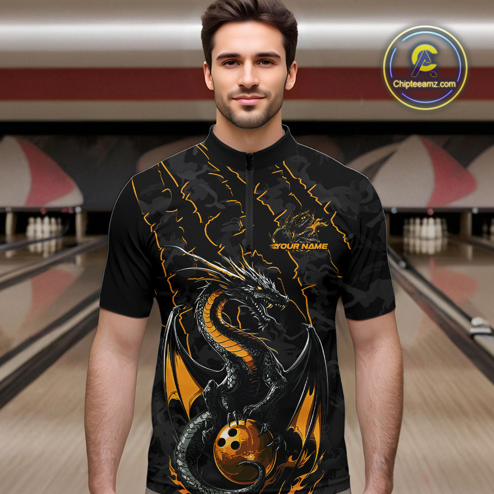 Custom Gray And Yellow Camo Dragon Claws Bowling Men Quarter-Zip Shirts, Team Bowling Jerseys IPHW9857