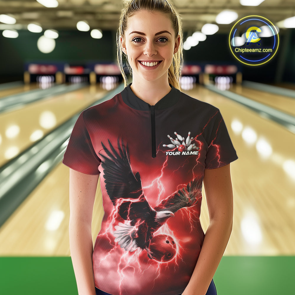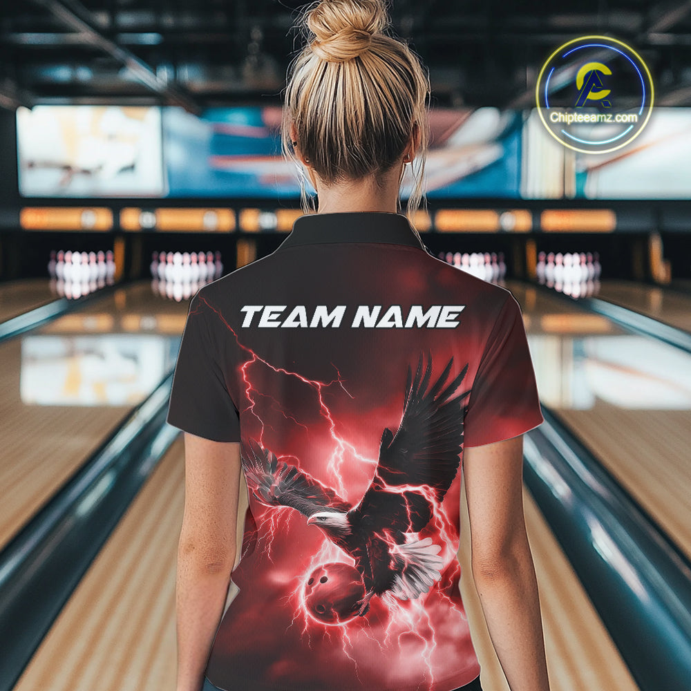 Custom Red Thunder Lightning Eagle Women Bowling Shirts, Eagle Bowling Team Jerseys IPHW10147