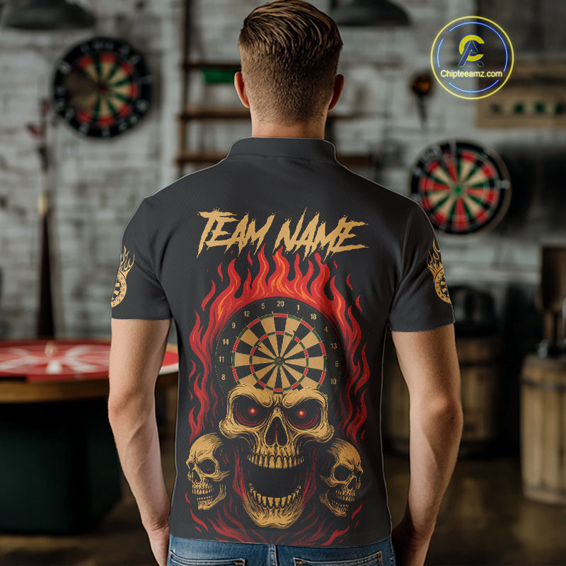 Custom Grunge Horror Skull Fire Flame Dartboard Dart Polo Jerseys For Men Dart Gifts NYN1648