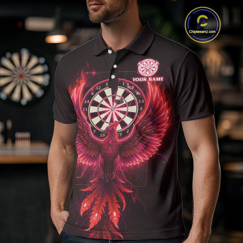 Custom Funny Flame Phoenix Red Dartboard Dart Men Polo Jerseys Outfits Dart Shirts NYN1744