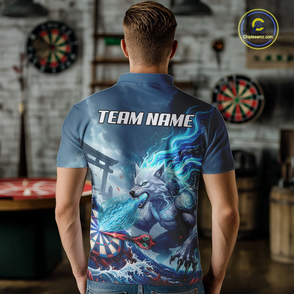 Custom Red & Blue Flames Wolf Dartboard Dart Men Polo Jerseys Outfits Dart Team Shirts NYN1751