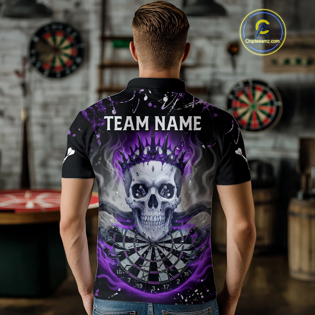 Grey Purple Smoke Crown Skull Dartboard Custom Mens Polo Dart Shirt Splatter Dart Jerseys NYN1772