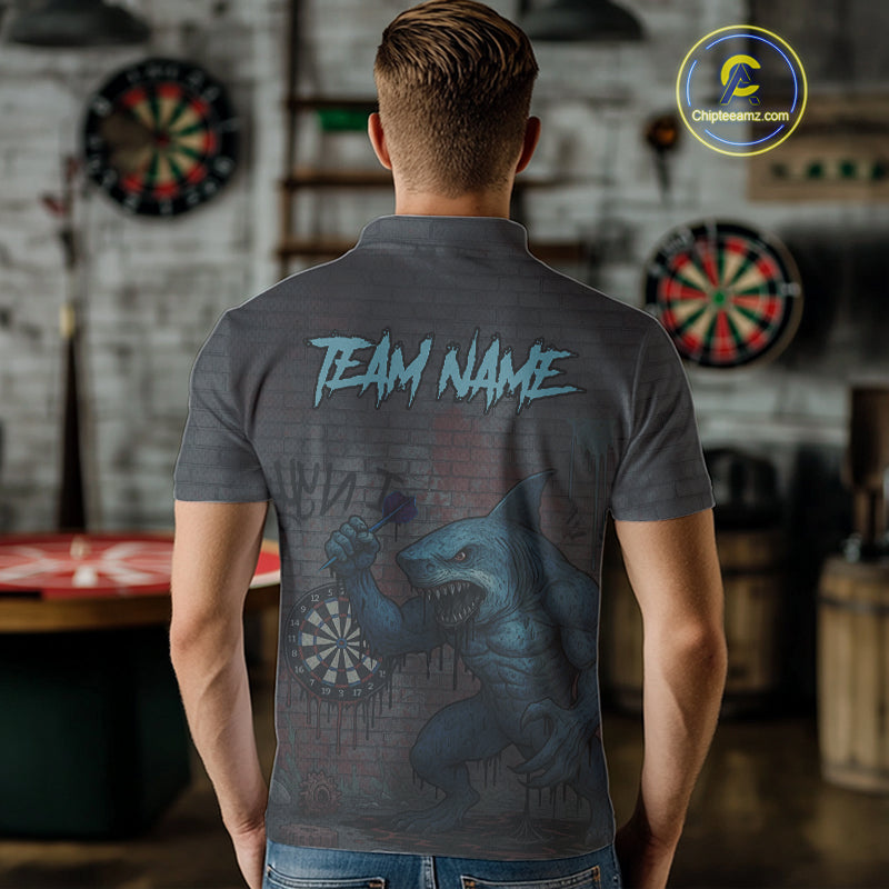 Custom Blue Dripping Shark Grunge Dartboard Funny Dart Men Polo Shirt Graffiti Dart Jerseys NYN1784