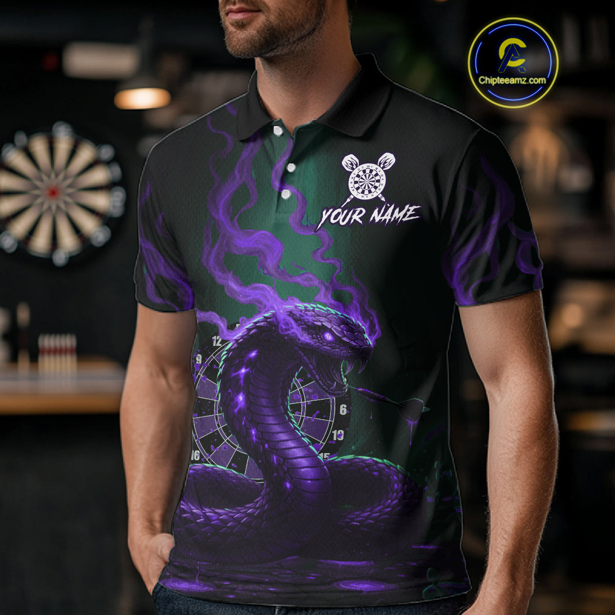 Custom Purple Smokes Funny Cobra Dartboard Men Darts Polo Shirt, Outfits Dart Jerseys NYN1814