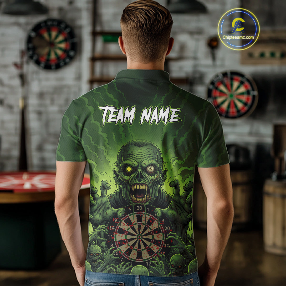Custom Green Multi Zombie Grunge Dartboard Darts Polo Shirt For Men Skull Dart Jerseys NYN1835