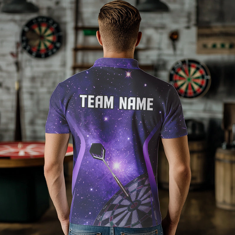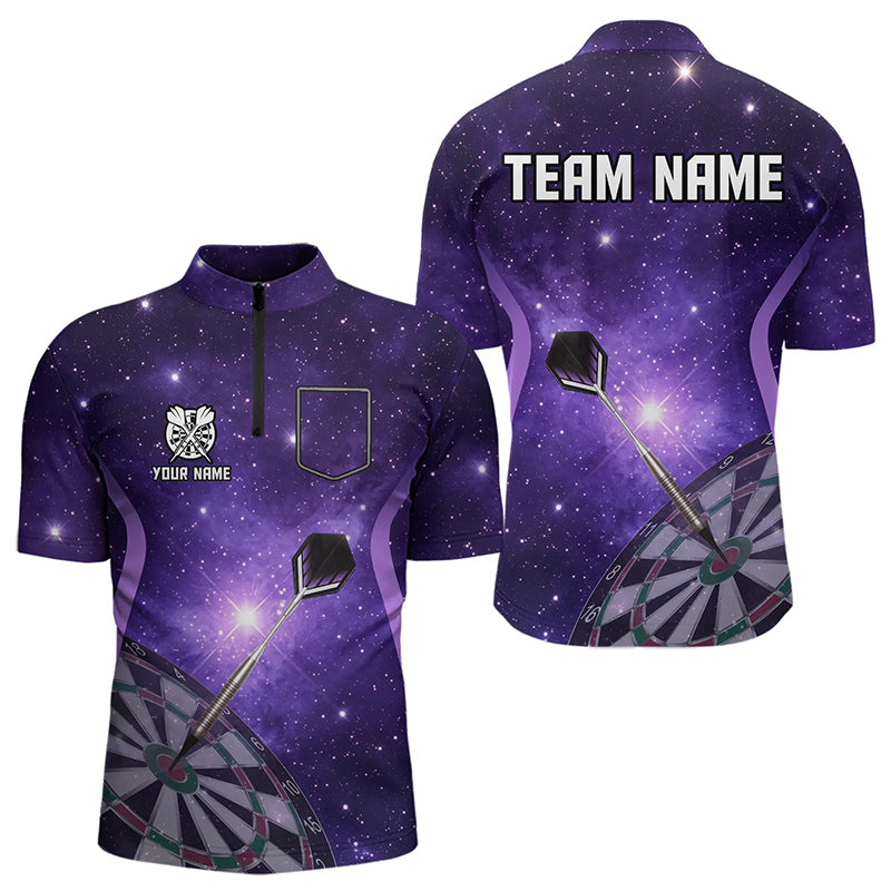 Purple galaxy space pattern Darts Polo, Quarter zip Shirts For Men Custom Team Darts Jersey Outfit NQS9448