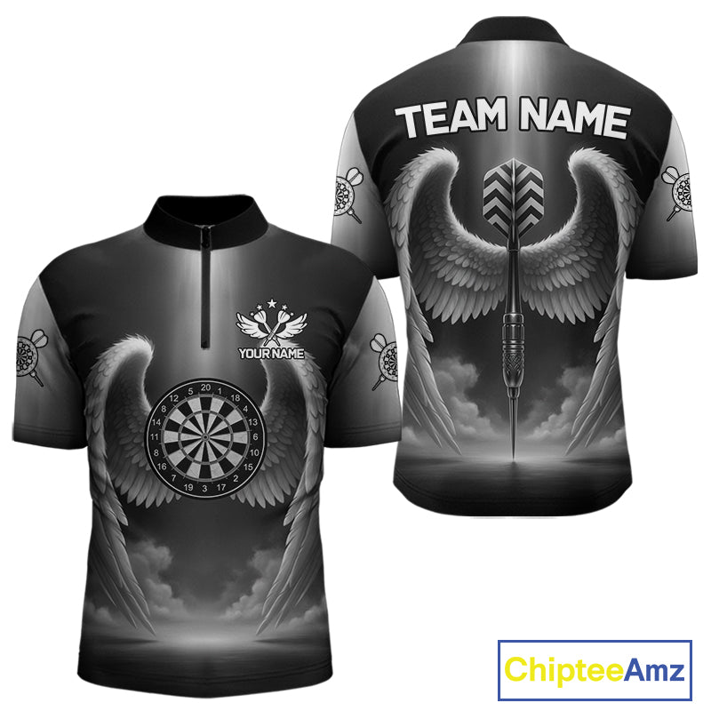 Grey Silver Wings Dartboard & Arrow Custom Men Darts Quarter-Zip Shirt Outfits Dart Jerseys NYN1858