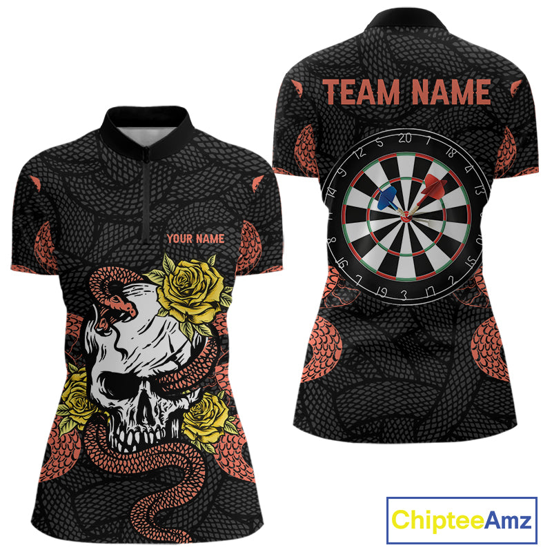 Custom Orange Cobra Roses Skull Dartboards Dart Shirts For Women, Dart Team Jerseys NYN0044