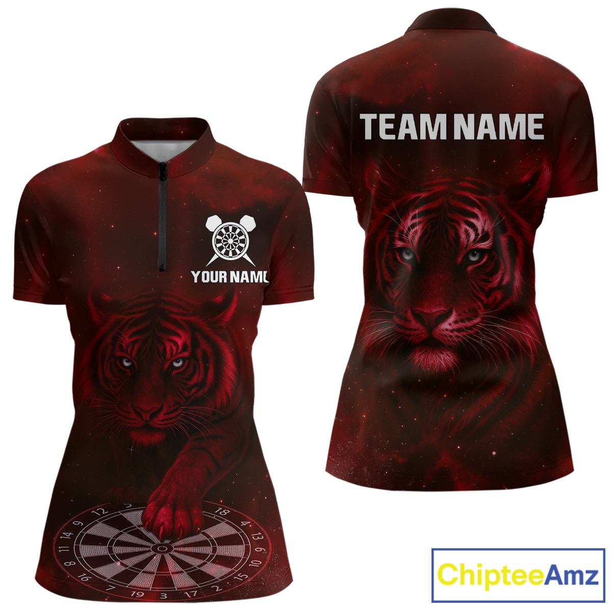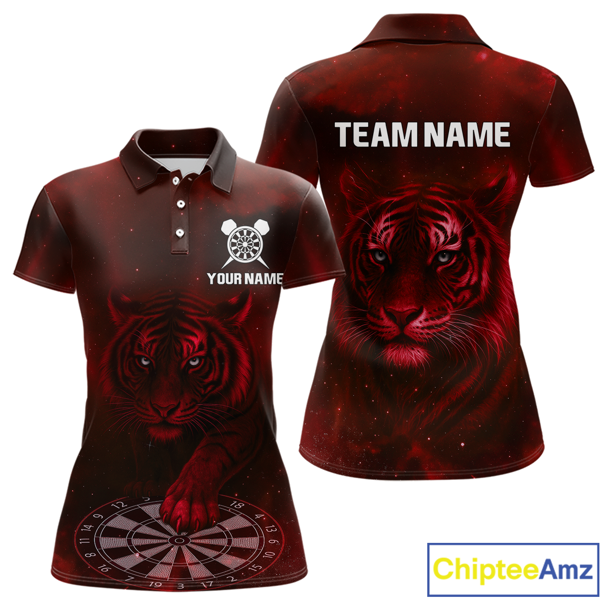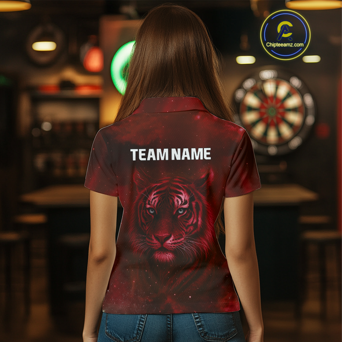 Red Galaxy Tiger Dartboard Women's Darts Team Shirt - Custom Name For Darts Jersey NYN0467