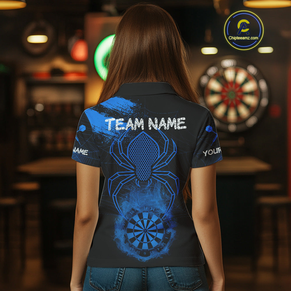 Blue Spider Women's Grunge Darts Shirt Smoke Dartboard - Custom Name For Darts Jersey NYN0468