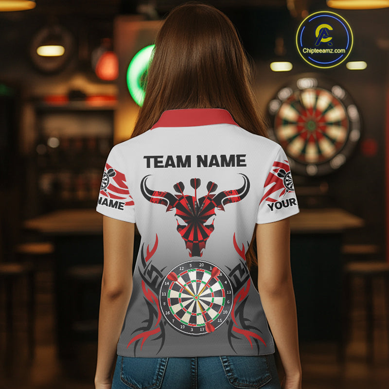 Red Dark Bull Colorful Dartboard Women's Darts Shirt - Custom Name For Darts Jersey NYN0516
