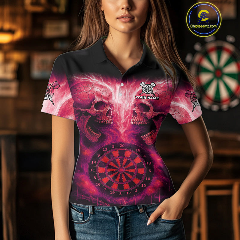 Electric Red Skulls & Dartboard Darts Shirt For Women - Custom Dart Player Jersey NYN0540
