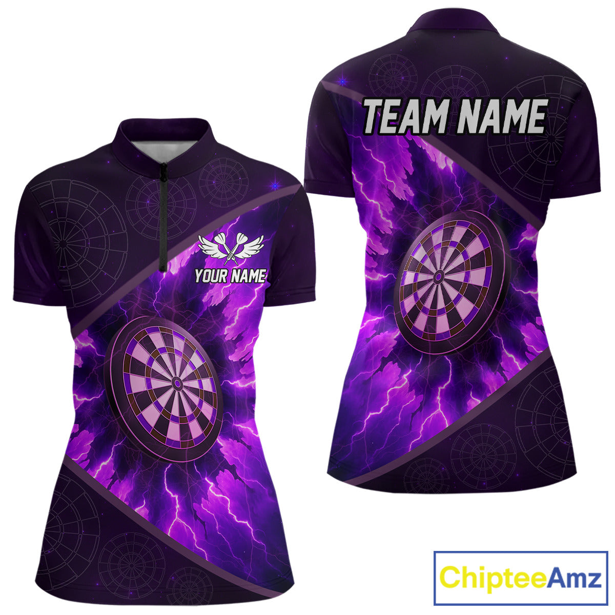 Thunder Dartboard 3D Darts Shirt For Women Custom Name & Team Jersey | Opt1 - Purple NYN0642