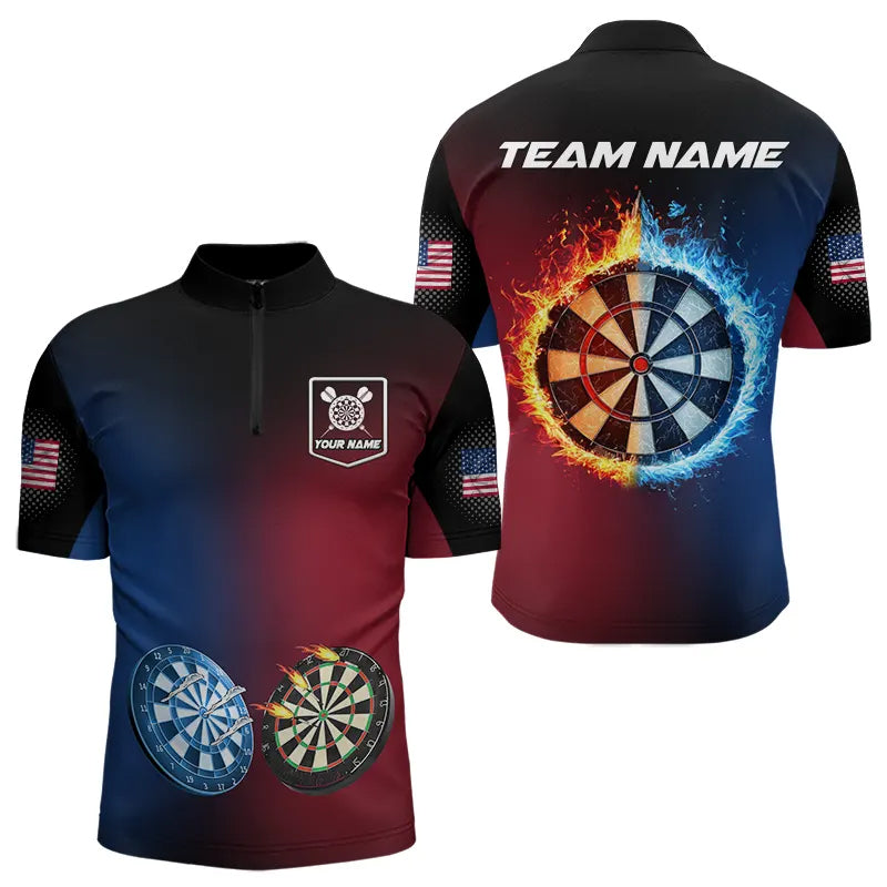 Blue And Red Dart Water Fire Men Dart Shirt With Pocket Custom Dart Jerseys TDM3500