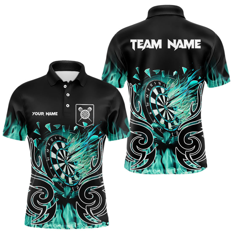 Custom Turquoise Tribal Flame Dart Shirt For Men, Dart Jersey Pocket Option TDM3795