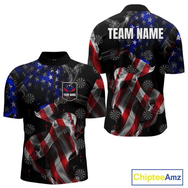 Custom Men's Dart Shirt With Pocket Option, US Flag Smoke Darts Team Jersey TDM4029