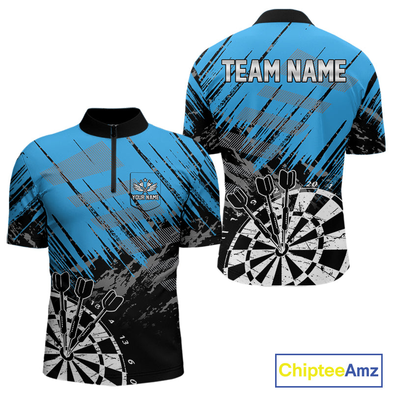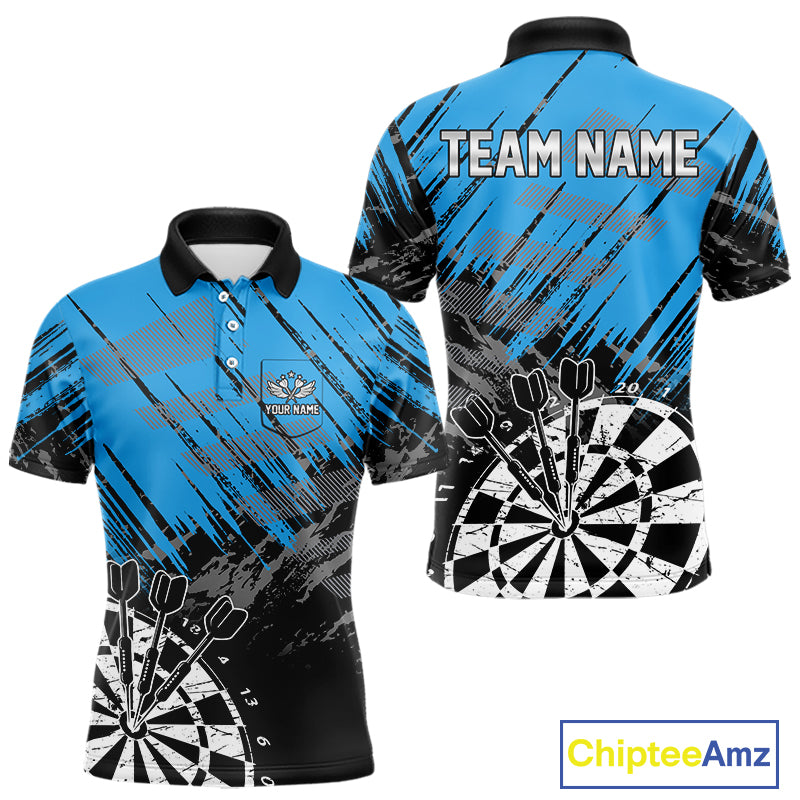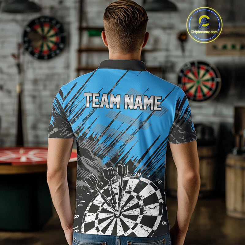 Blue Black Grunge Darts Shirts For Men Custom Dart Jersey With Pocket Option TDM4108