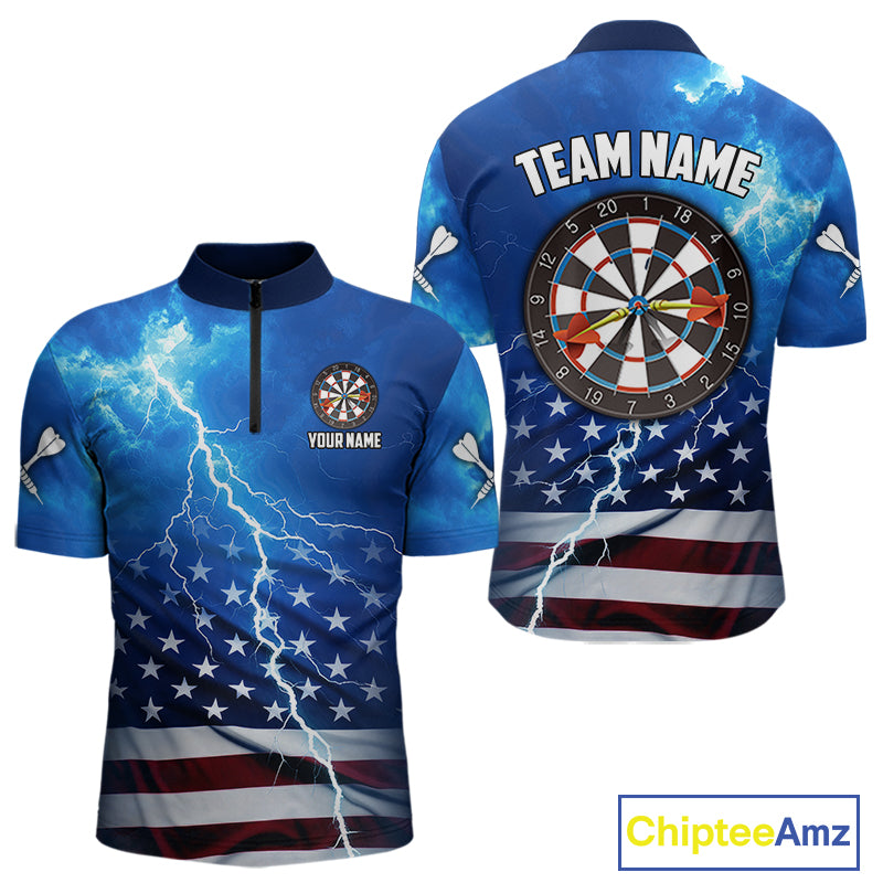 Blue Lightning US Flag Dart Shirt For Men Custom Dart Jersey Pocket Option TDM4114