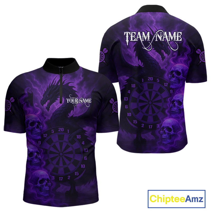 Custom Skull Dragon Purple Dartboard Men Polo & 1/4-Zip Dart Shirt, Darts Team Jerseys NYN1090