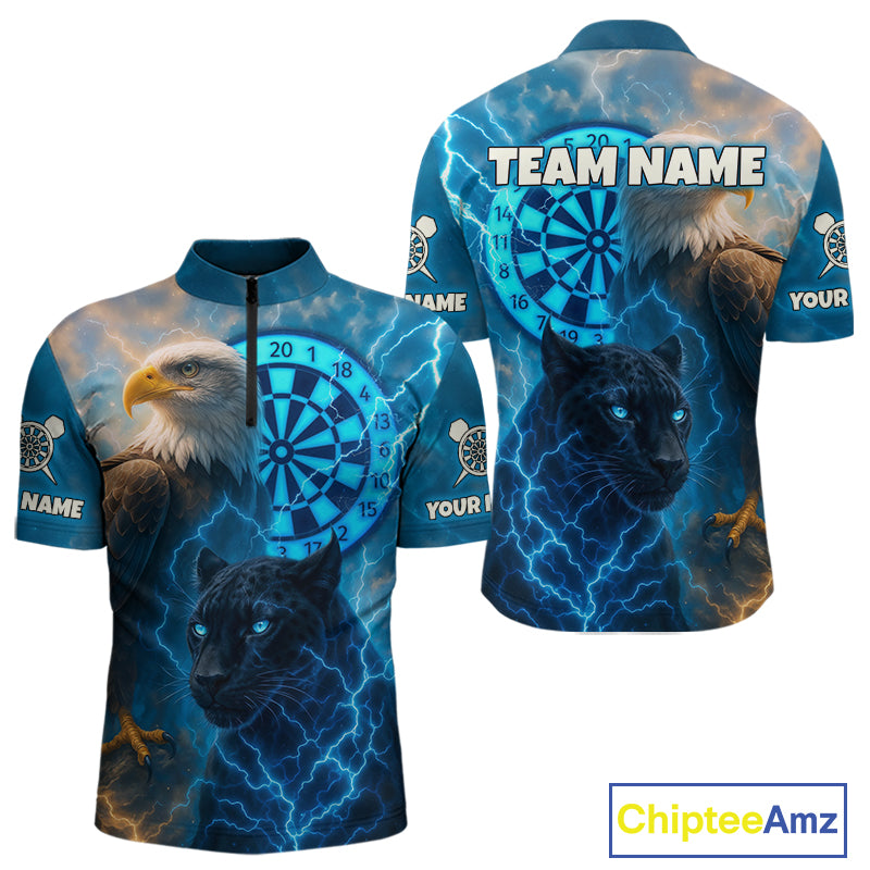 Custom Darts Shirt For Men Lightning Eagle Panther Dartboard Dart Team Jerseys | Blue NYN1150