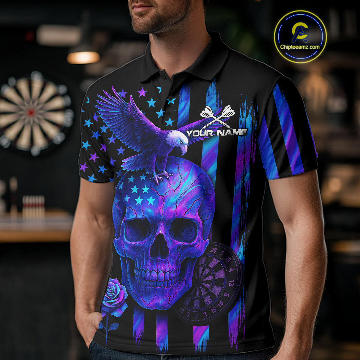Custom Holographic US Flag Patriotic Darts Shirt For Men Dart Eagle Skull Jerseys NYN1278
