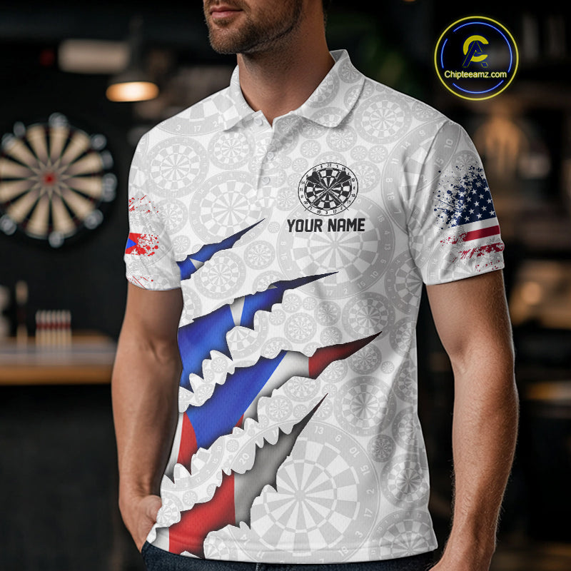 Custom Puerto Rico American Flag Dart Team Polo Shirt For Men, Patriotic Dart Jerseys IPHW10022