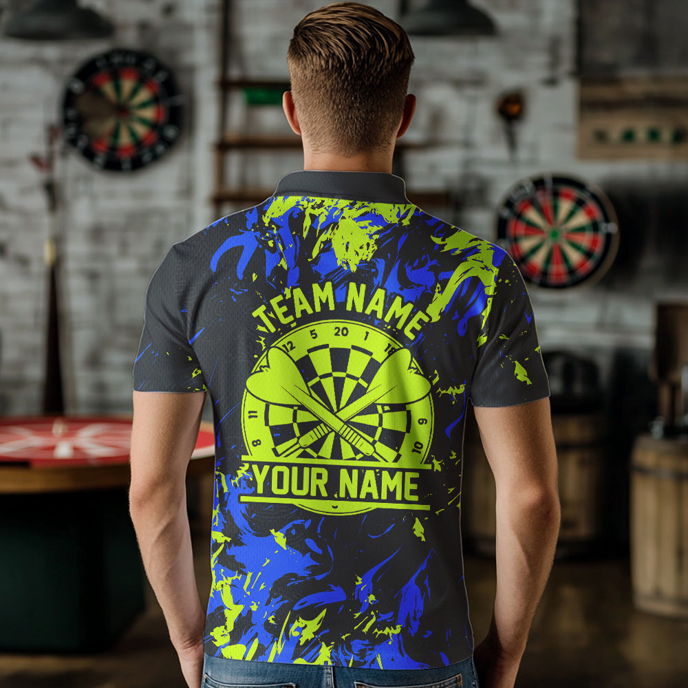 Blue And Green Splatter Personalized Dart Polo Shirts For Men, Dart Jerseys For Team IPHW8501