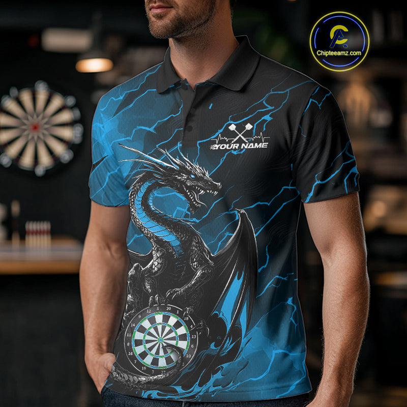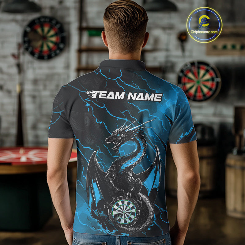 Custom Blue Thunder Lightning Dragon Dart Polo Shirts For Men, Dragon Dart Team Jerseys IPHW9941