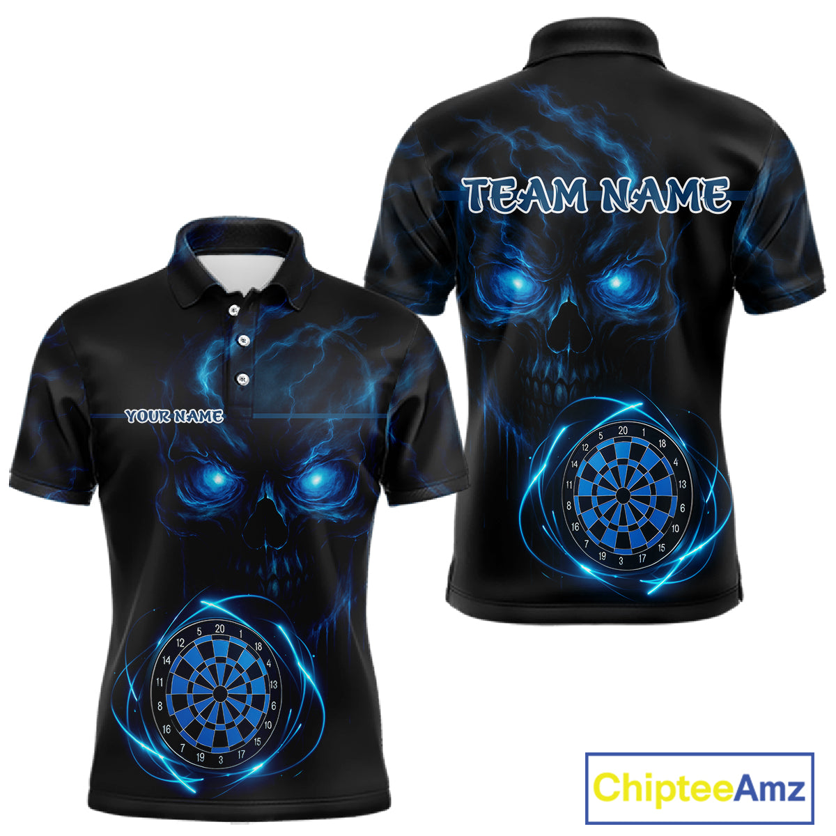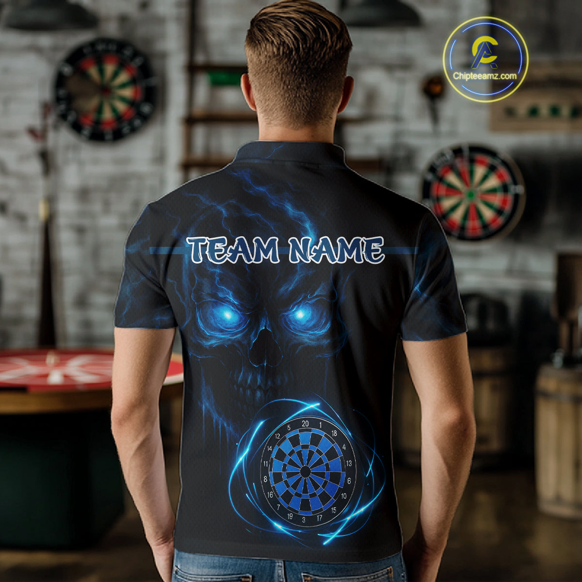 Custom Lightning Blue Skull Dartboard Polo Dart Shirt For Men Outfit Skull Dart Team Jerseys NYN0928