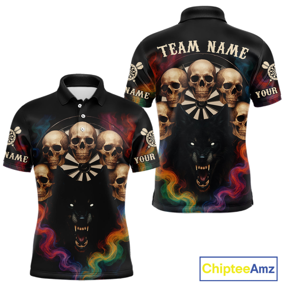 Custom Wolf Skulls Men's Polo Dart Shirt Colorful Smoke Dart Outfits Jerseys For Darters NYN1323