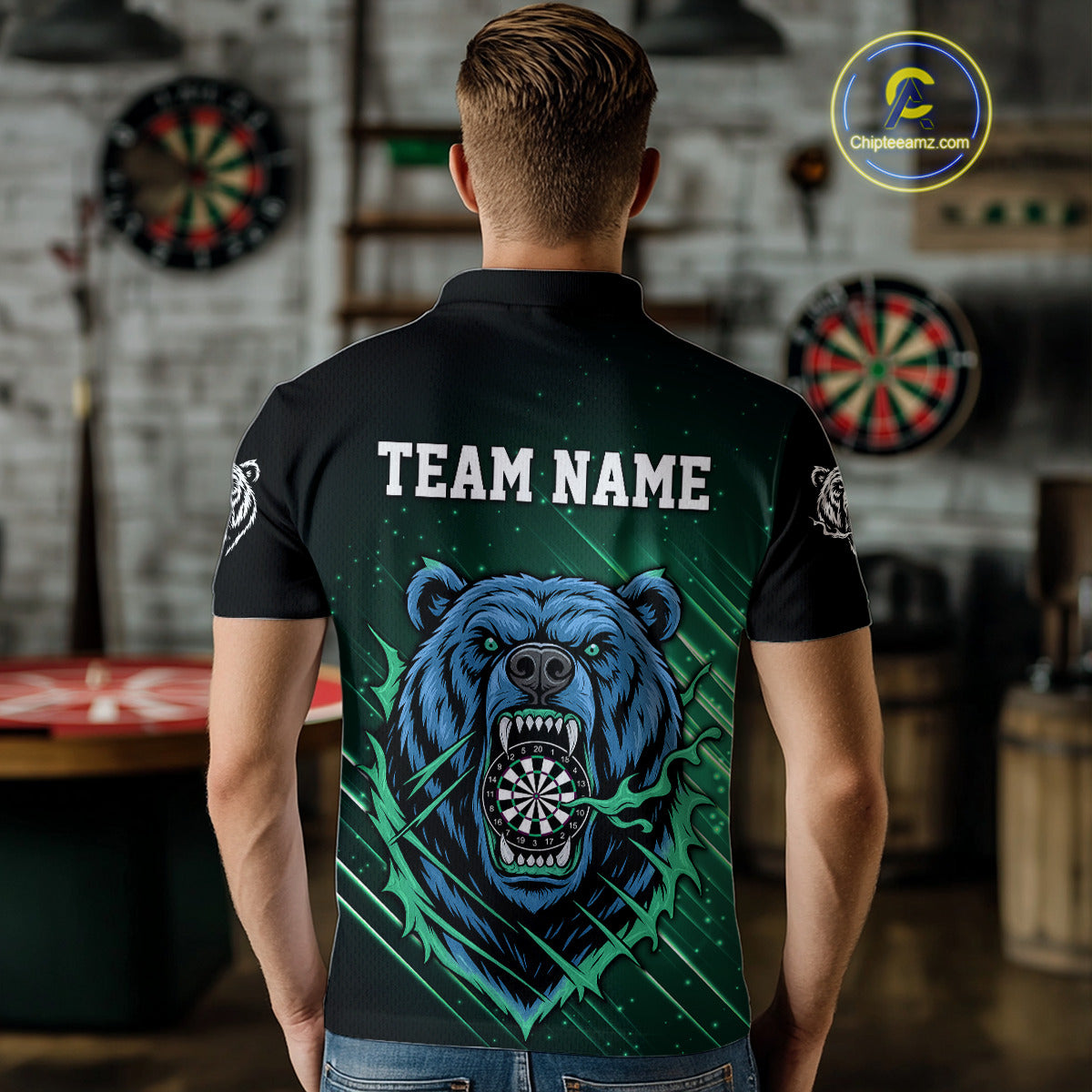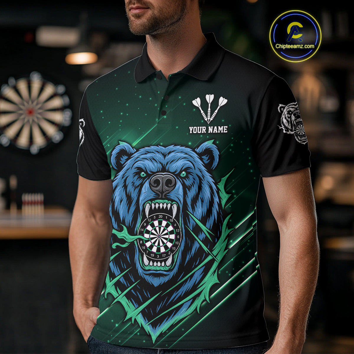 Custom Green And Blue Bear Dartboard Polo Dart Shirt For Men Outfit Dart Team Jersey NYN1334